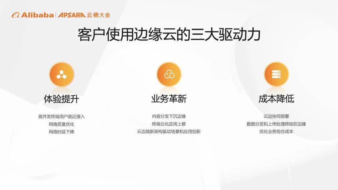 在边缘云的演进过程中,阿里云提炼出边缘云技术发展的三大价值驱动力,通过云边协同的方式,推动企业数字化发展,为用户带去更多的可能。