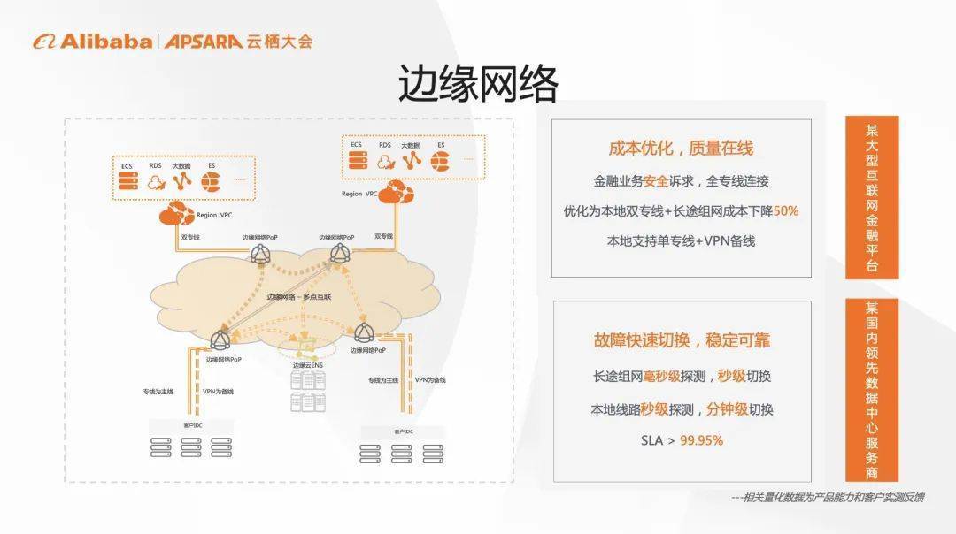 阿里云边缘网络助力客户突破硬件的限制,在安全进一步提升的情况下,网络成本得到50%的优化,同时,实现长途组网毫秒级探测和秒级故障切换以及本地线路秒级探测和分钟级切换,保障稳定可靠的网络服务。