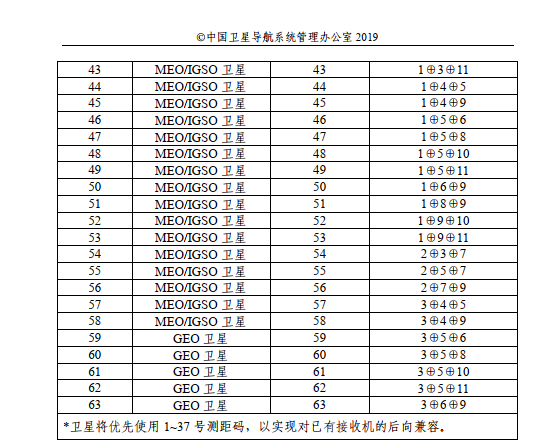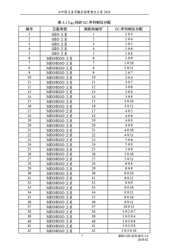 由G2的不同抽头进行异或:由下面的表选择,不同的卫星号,对应不同的抽头系数