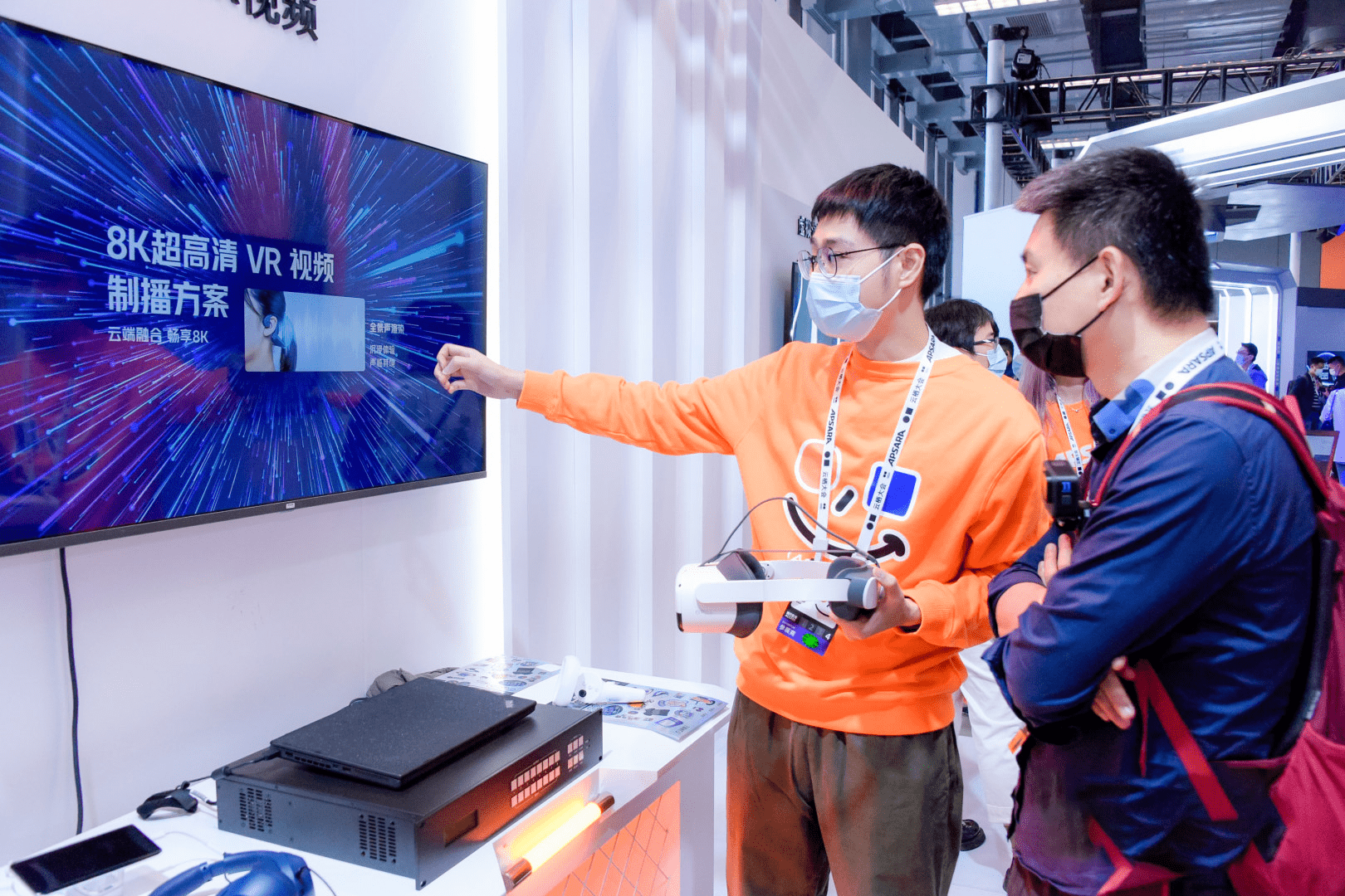 其中,「8K VR」互动项目,吸引了众多参会者前来体验,用户可佩戴最新款Pico眼镜,360度身临其境体验千里之外的超高清实景画面,实现一场虚实穿越的时空之旅。