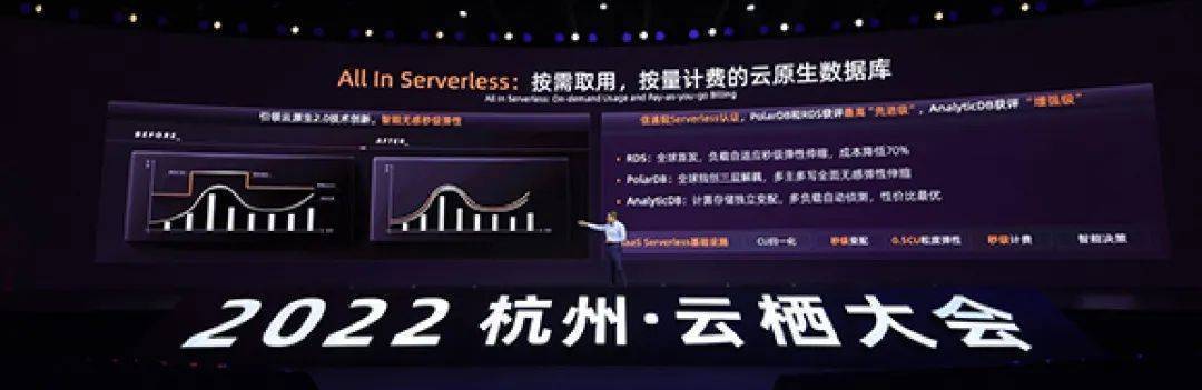 PolarDB、ADB、RDS核心产品All in Serverless,支持秒级弹性变配,且业务无损,最多可帮助客户降低70%成本。