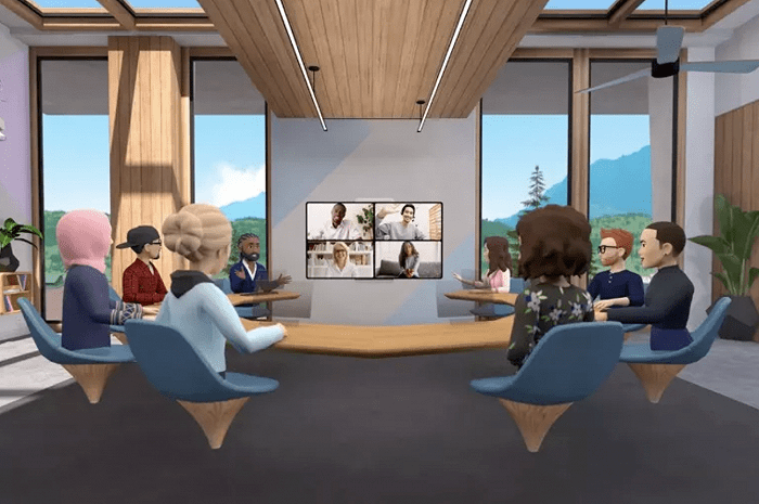 以Facebook基于VR开发的虚拟会议为例。而为了更贴近现实,Workrooms还加入了沉浸音频功能,让用户交谈时,声音的发出的方向跟他们所处的房间位置一致,从而进一步增加参会者的沉浸感。