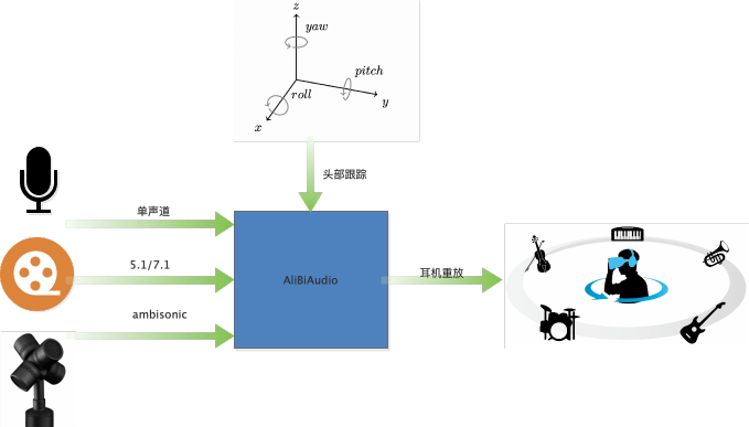 ❖ Ambisonics输入:对Ambisonics格式进行渲染,用于VR直播,VR点播,当前部署在Aliplay中。