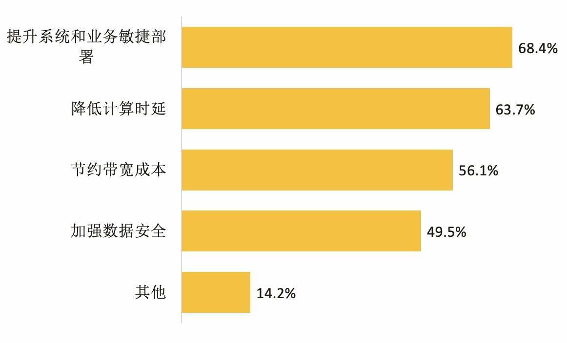 | 在效益提升方面,提升业务的敏捷部署,在边缘计算应用价值中至关重要,占比高达68.4%。
