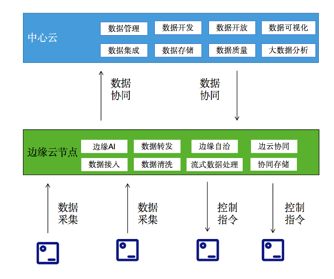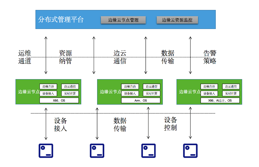 | 在边缘侧,实现异构数据接入、实时处理、边缘存储、数据转发;