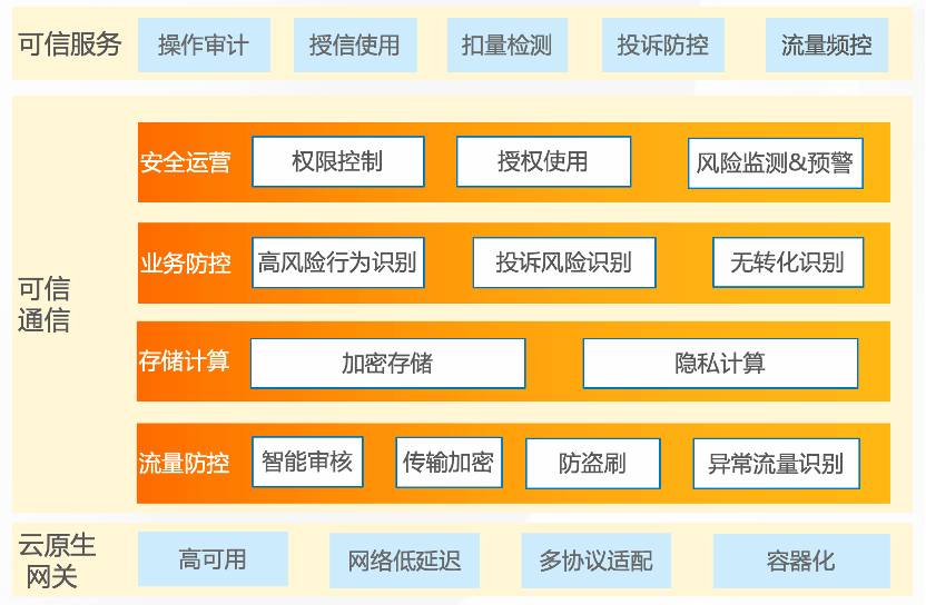 基于云原生的可信、可靠、透明的可信通道,实现客户的可审计,用户的可授信,供应商的扣量可检测,投诉的可防控以及流量的可频控,最终实现多方的信任关系。