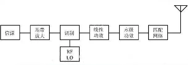 在调制器产生射频信号后,射频已调信号就由RFPA将它放大到足够功率,经匹配网络,再由天线发射出去。