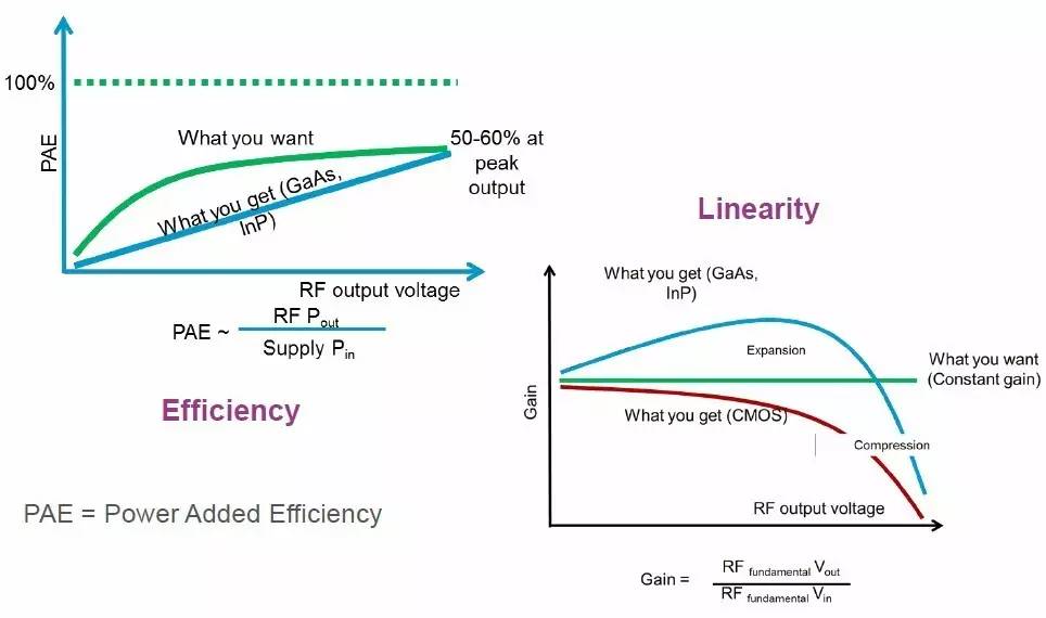 晶体管的效率都有一个理论上的极限。这个极限随偏置点(静态工作点)的选择不同而不同。另外,外围电路设计得不好,也会大大降低其效率。目前工程师们对于效率提升的办法不多。这里仅讲两种:包络跟踪技术与Doherty技术。