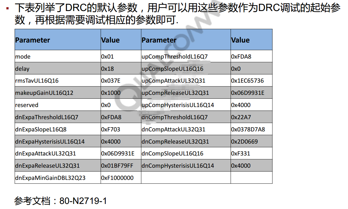 二、 高通默认参数