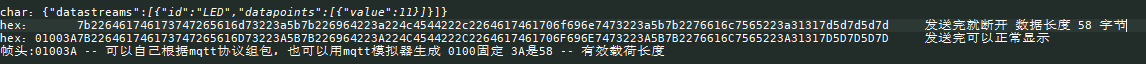 却总是收到类似下面的不完整帧,但是感觉就算收到上面那样一帧也不太对,后面没有onenet下发的topic和消息体