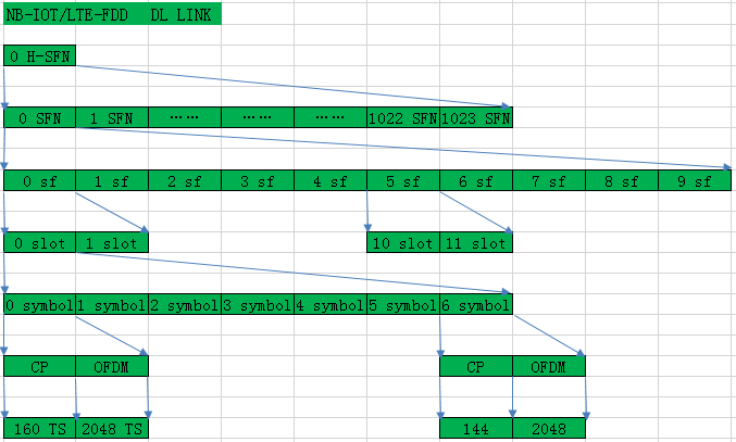 LTE与NB-IoT的时域资源基本是相同的,但也有略微的区别,具体的体现见本节内容介绍。