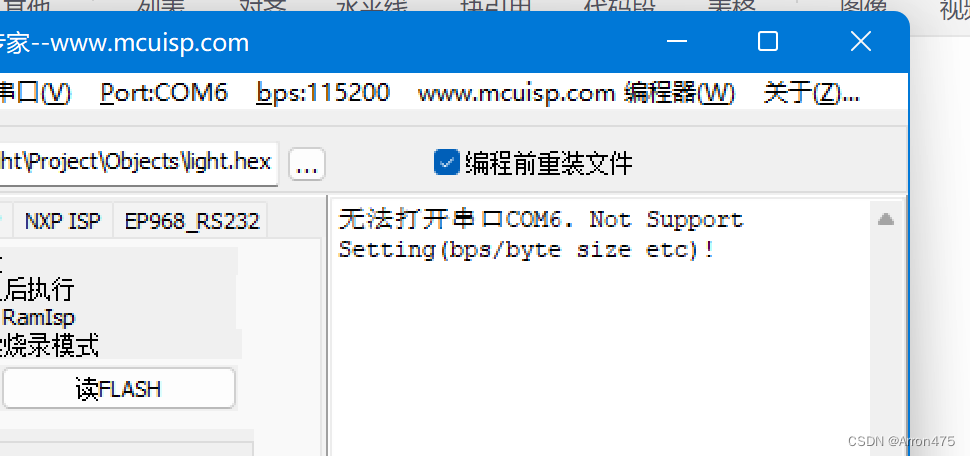 4、无法打开串口COMx:Not Support Setting(bps/byte size etc)!