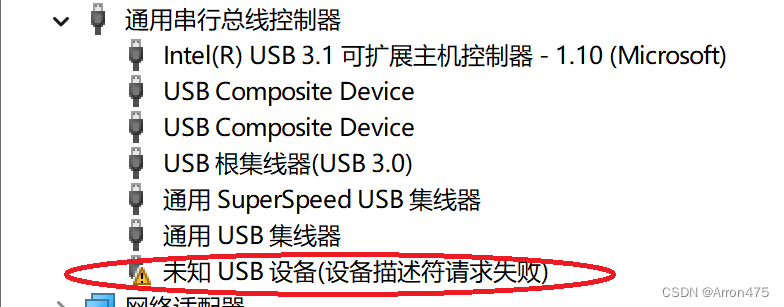 解决方法:右键卸载这个设备,再重新插拔USB 转 TTL,多试几次。笔者怀疑是USB转TLL和拓展坞的USB口接触不好导致的。