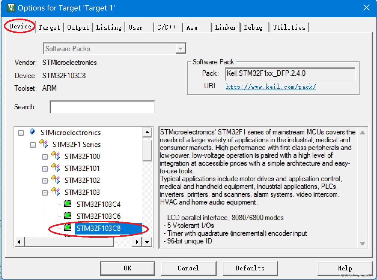 1、首先需要建立一个STM32F103C8T6的keil工程。