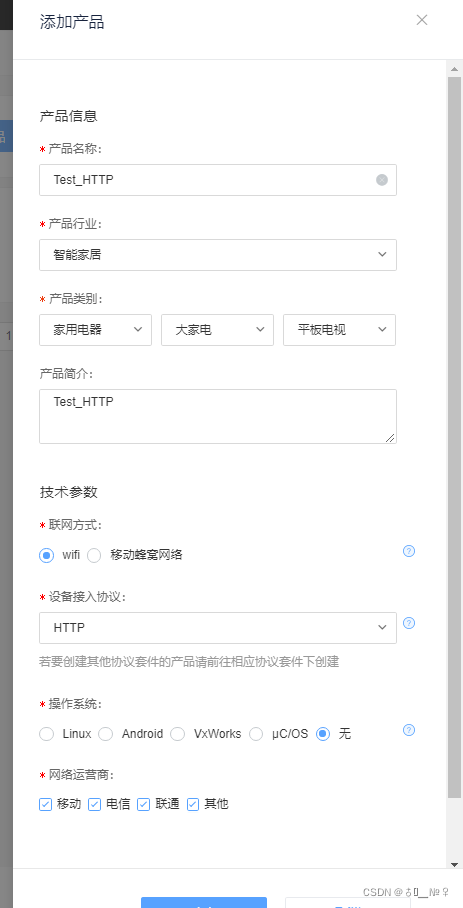 2、点击控制台 --> 全部产品服务 --> 多米协议接入 --> HTTP(这里我们使用HTTP协议)—> 添加产品