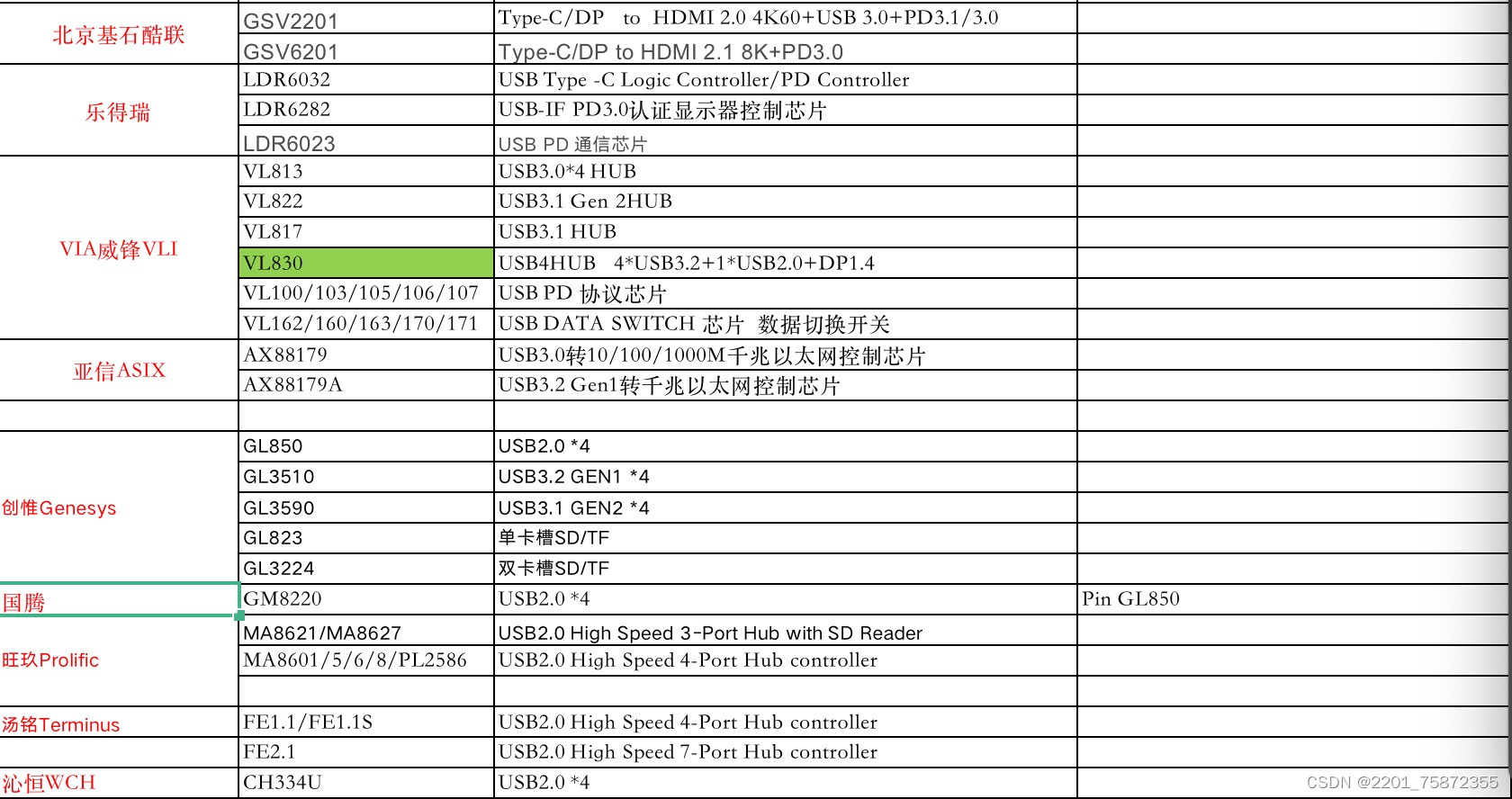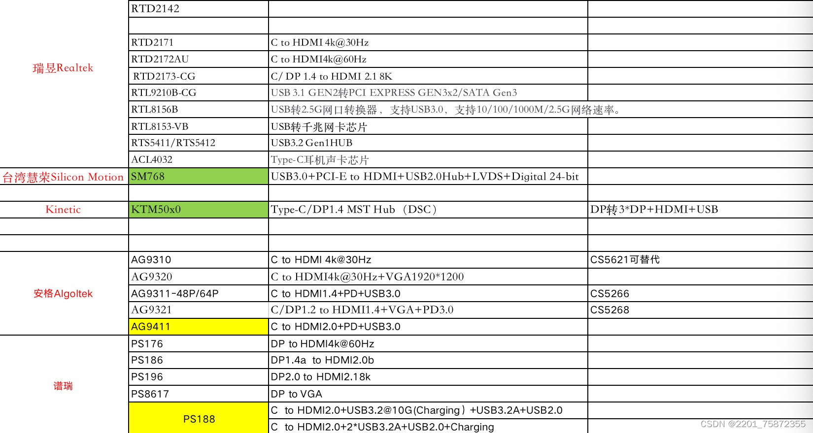 以上就是沉默钢笔最近收集整理的关于Type-C扩展坞常用料号大全|音视频芯片|cc协议芯片|PD芯片|HUB芯片|网口芯片|音频芯片的全部内容,更多相关Type-C扩展坞常用料号大全|音视频芯片|cc协议芯片|PD芯片|HUB芯片|网口芯片|音频芯片内容请搜索靠谱客的其他文章。