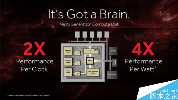 规格上,AMD RX Vega提供4G/8G/16GB HBM2显存,即使最低的4GB HBM2其表现也强于1080 Ti的11GB G5X。同时,Vega将搭载下一代计算单元,每时钟性能翻翻,每瓦性能翻两番。