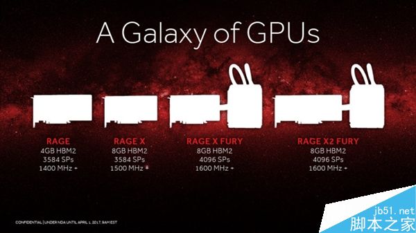 最终,AMD RX Vega的家族阵营将包括RAGE、RAGE X、RAGE X Fury、RAGE X2 Fury四款,参数依次提升。