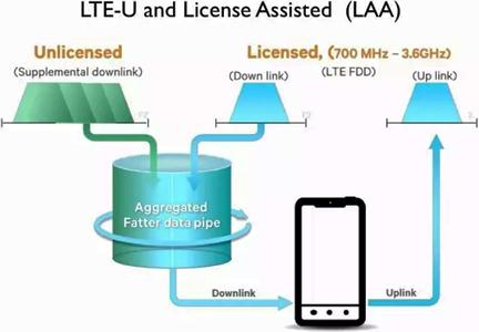 LAA是在非授权频段中使用LTE网络技术, 基于LTE的载波聚合的架构。