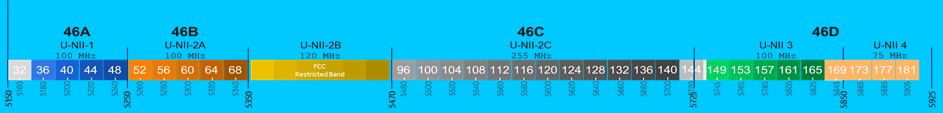 在46B和46C频段中,对ETSI与FCC,允许使用的信道数不同。