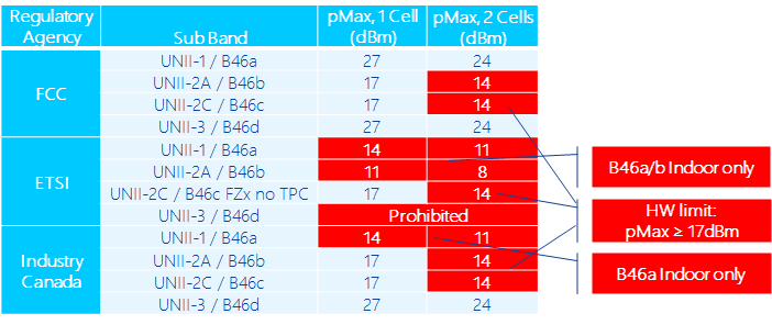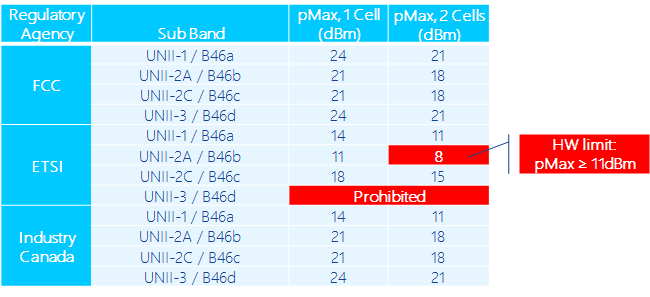 室内和室外部署时,不同地区,允许的发射功率要求并不完全相同。