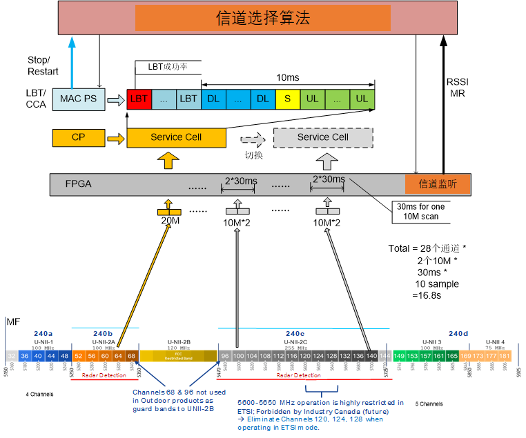 (1)谁负责扫描所有非授权的信道的状态:由RFIC或FPGA进行信道扫描。