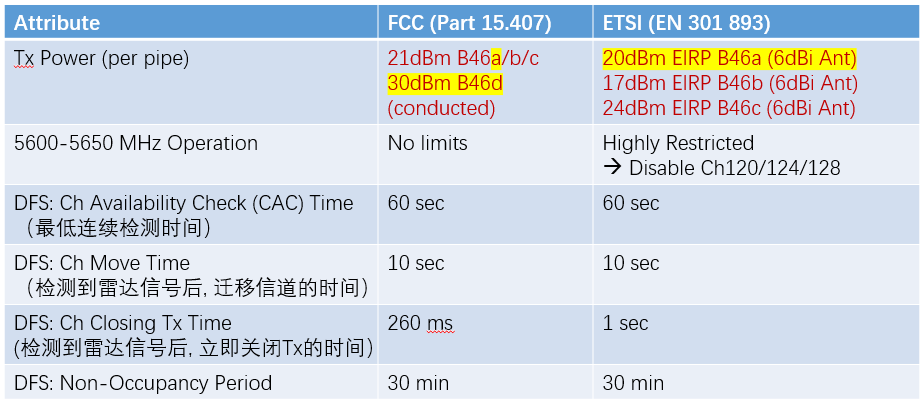 2. ETSI与FCC在5GHz非授权频谱的比较