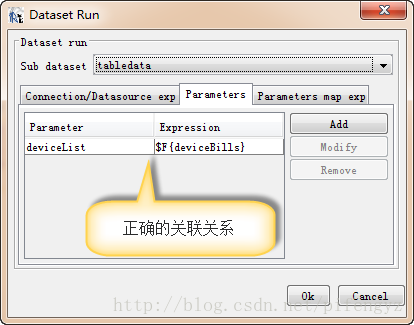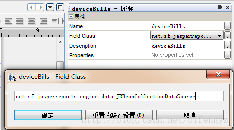第三步:在新建的dataset中添加参数和需要循环的属性,这些属性是被嵌套list的属性,这里的deviceBills要和deviceList互相对应,因为前者要传值给后者。