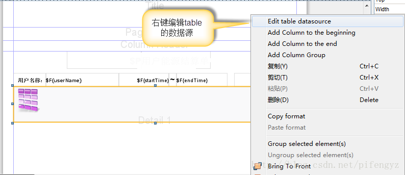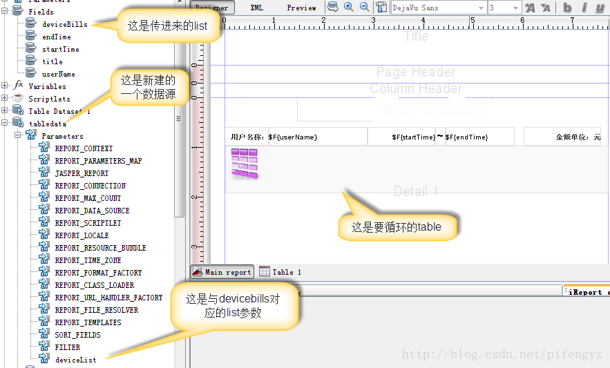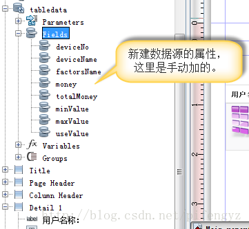第一步:在新建的jrxml的文件中添加需要循环的属性和一个table表格。