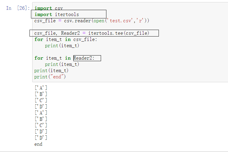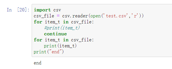 暴力方式:生成新的迭代器(注意这里的迭代器指的是csv.reader,而不是item_t,因此如果只是将item_t改成如item_tt之类的是不起作用的。)
