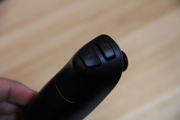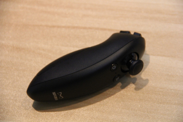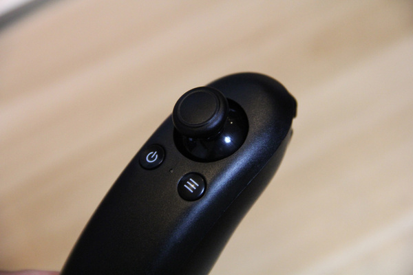 随机附送的蓝牙遥控器造型比较可爱,一只手可以完全掌控,手柄设计符合人体工程学,手持舒适,摇杆与按键的操作方便,只是用户还需要自行购买电池,不随机赠送。