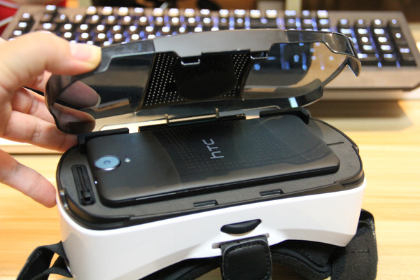 接下来简要介绍使用前的准备。目前魔镜3只支持Android手机,所以建议准备好一款4.7-6.英寸的手机。笔者选用的是HTC E9,屏幕为5.5寸。安装好暴风魔镜APP,将蓝牙手柄与手机连接,最后打开APP,将手机放入魔镜并调节位置、物距和瞳距,准备体验。