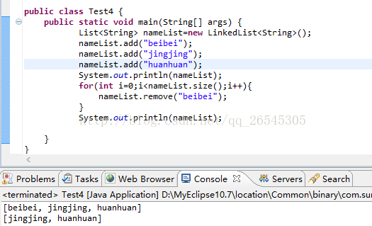 由输出结果可知,普通for循环,成功移除了元素“jingjing”。