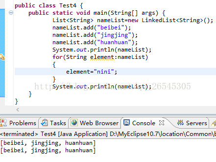 由输出结果可知,普通for循环成功将list集合中的每一个元素修改成“nini”