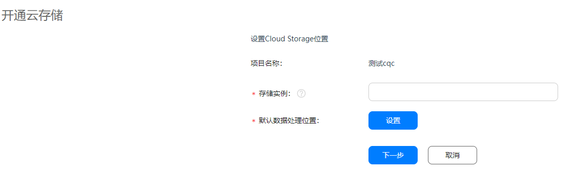 4)在弹出的页面中,设置“存储实例”和“默认数据处理位置”。