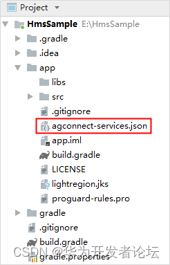 5.将配置文件"agconnect-services.json"复制到应用级根目录下。