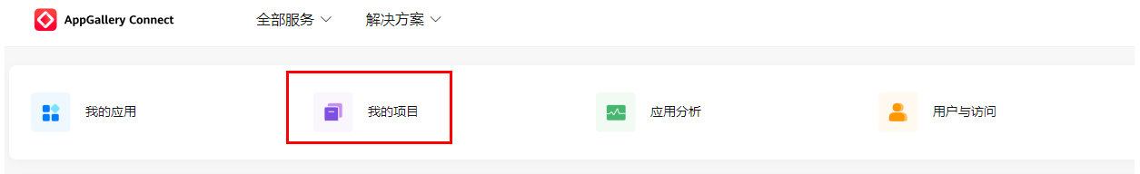 1.登录AppGallery Connect,点击“我的项目”,在项目列表中找到并点击您的项目。