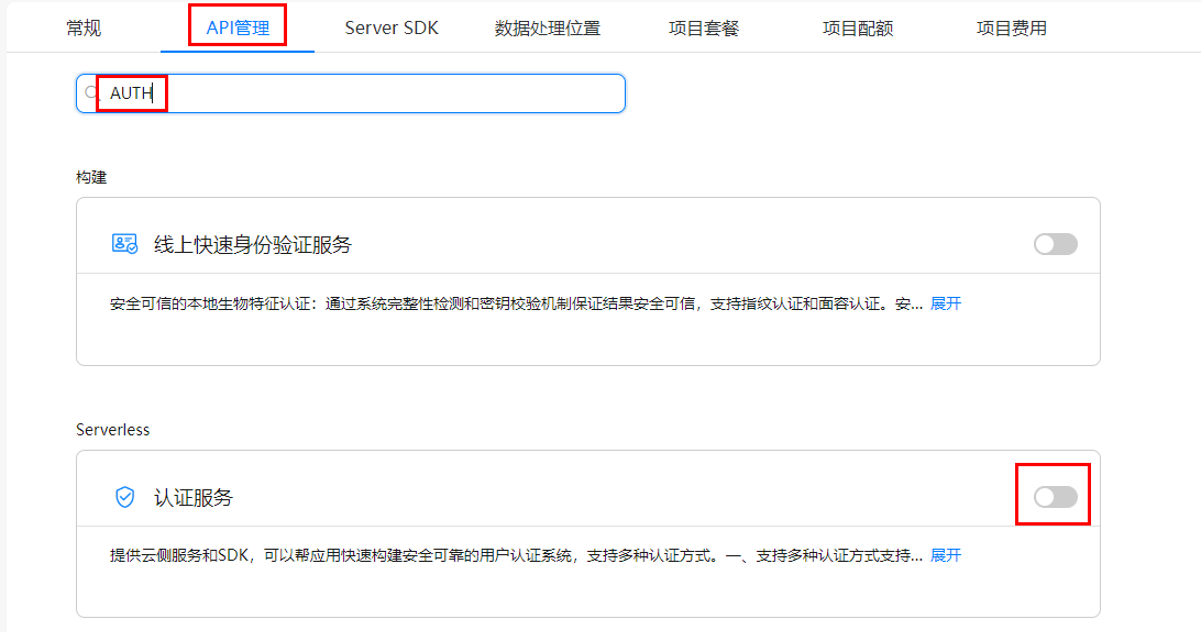2)点击需要集成的项目卡片,在顶部的应用下拉列表中选择要开通服务的应用。