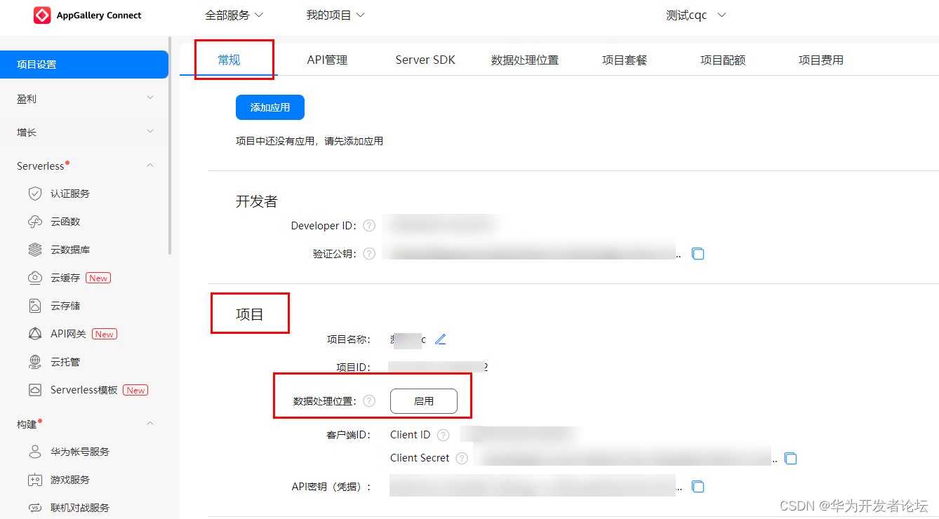 3.在“项目”区域下点击“数据处理位置”后的“启用”。