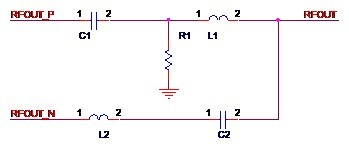 方法一,使用平衡器。原本相位相差180°的差分信号经过平衡器(Balun,俗称巴伦),就可以得到合二为一的单端射频信号。如图2-5所示,图中的F1就是一个平衡器,差分信号RFOUT_P和RFOUT_N经过F1得到单端信号RF_OUT。