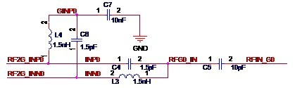 其实大家也一定想到了,收发器接收信号和收发器发送信号差不多就是互为逆过程,因此电路的结构也差不多是相反的。没错,看了下面的实际电路图就知道了。 先来介绍使用平衡器的方案。在某实际案例中,采用了如图2-8所示的平衡器电路。单端信号RF_IN经过平衡器F5后得到差分的射频信号RFIN_P和RFIN_N。