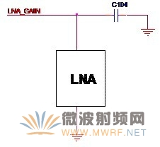 我为什么要把电源与增益控制放在同一节呢?因为低噪声放大器的增益是依靠改变供电电压来实现的,这样就很容易理解了。学过模拟电路的都会知道,三极管放大电路的放大倍数和供电电压有密切关系,对于芯片说也同样如此。图4-4给出了常见的增益控制的电路形式。图中的LNA_GAIN既是来自无线收发器(Radio Transceiver)增益控制信号,又是低噪声放大器的供电电源,C104是滤波电容,显而易见,低噪声放大器的增益直接与LNA_GAIN的电压有关。