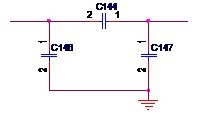和功率放大器一样,低噪声放大器的输入回路中也会有匹配网络,但是Atheros好像是不走寻常路,很少看到低噪放的输入匹配网络,而Ralink则不一样,几乎在每个设计中都中规中矩的使用Π型匹配网络,如图4-3所示,就是Ralink常用的Π型匹配网络,我个人是比较推崇这种做法的。有了匹配网络,我们可以最大限度的保证我们的设计是高性能的,也就是High-Performance。