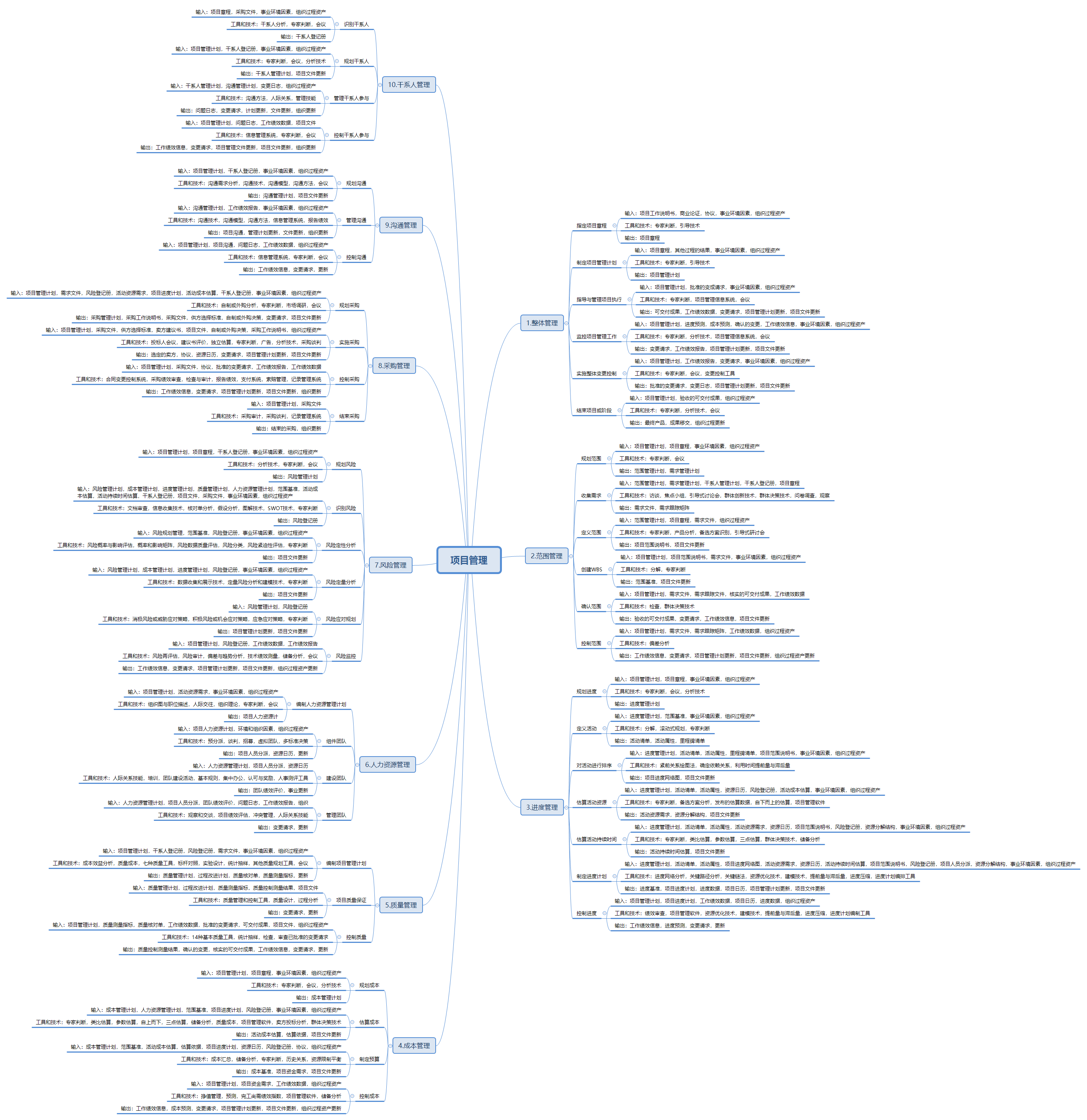 准备考2021年5月份的信息系统项目管理师,项目十大管理输入、工具和技术、输出总结如下,等考完通过了,再来写一篇分享哈,没考过就不写了,哈哈!!