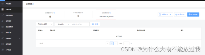 获取设备管理界面的“设备注册码”如下: