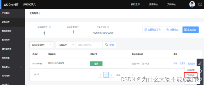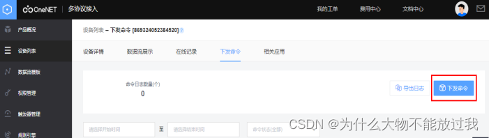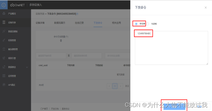 同时,平台侧可以在设备列表界面,通过下发指令下发任意数据给模组,示例如下: