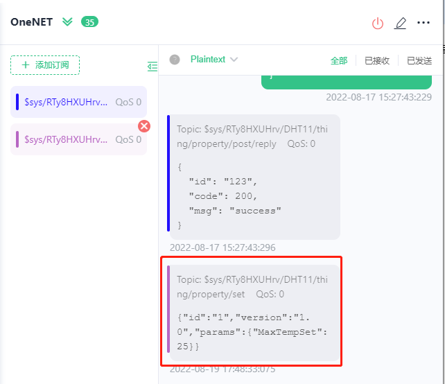 5.1 订阅设备属性设置topic