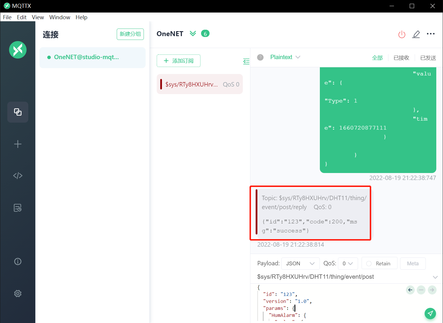 其中id为下行数据的id,需要匹配,code为200代表成功,msg可以自定义。