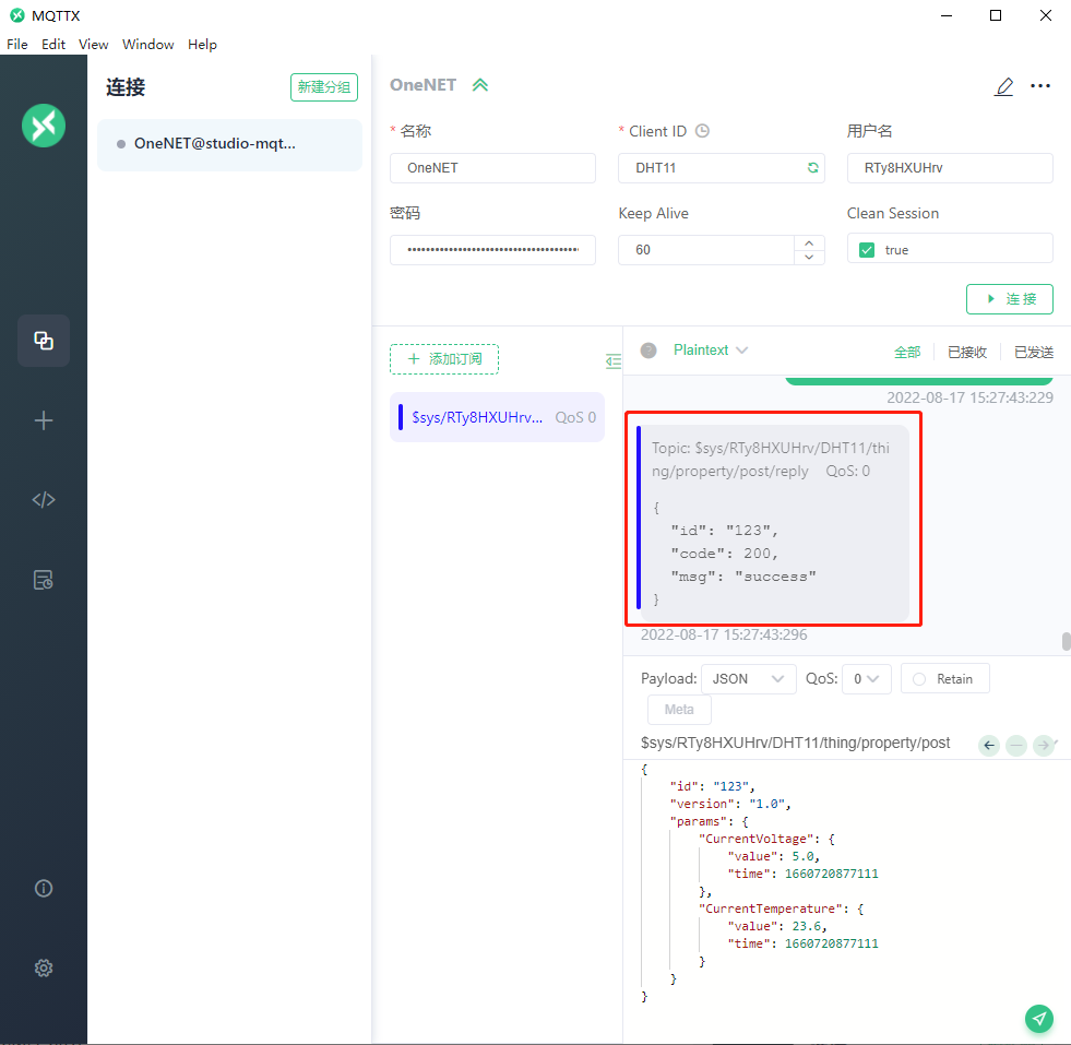为了确保设备上传消息确实被平台所接受处理,设备可以订阅系统 topic 获取属性上报结果消息,属性上报回复topic为:$sys/{pid}/{device-name}/thing/property/post/reply