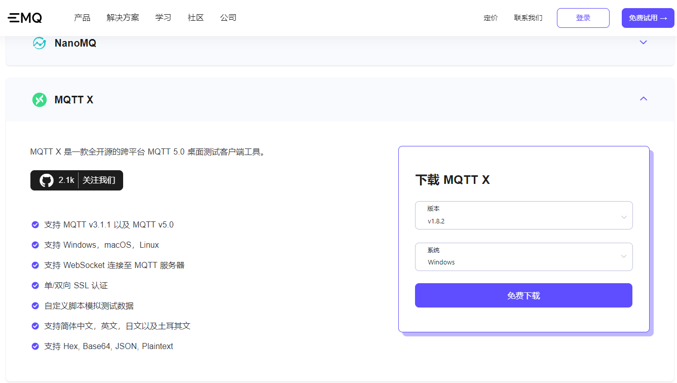 EMQ官网下载:https://www.emqx.com/zh/try?product=MQTTX